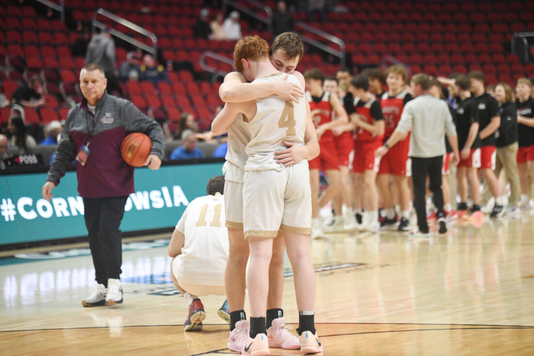 Louis Gonner, the hero of the substate final with his game-winning triple in overtime vs. Montezuma, scored 17 points with five assists to lead Bellevue Marquette. Tate Kueter and Justin Severson each added 11 points, with Severson pulling down 15 rebounds.