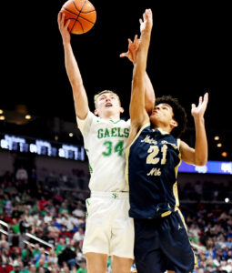 Hunter Horn scored 27 points with 11 rebounds, Carson Bargfrede dropped in 17 points and Jakob Koopman had a double-double as the top-ranked and No. 1 seed Gaels rolled to a resounding 74-55 victory over Burlington Notre Dame in a Class 1A semifinal here on Thursday inside the Casey’s Center.
