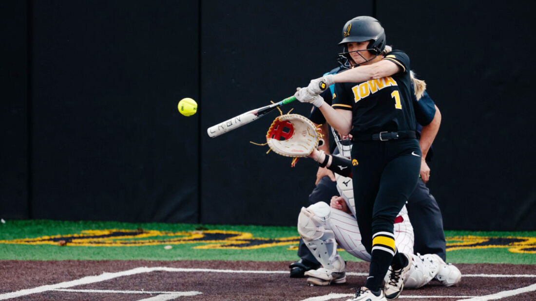 Photo courtesy of Iowa Athletics: Ex-Fort Dodge all-stater Tory Bennett connects on her home run for Iowa on Wednesday against rival Iowa State.