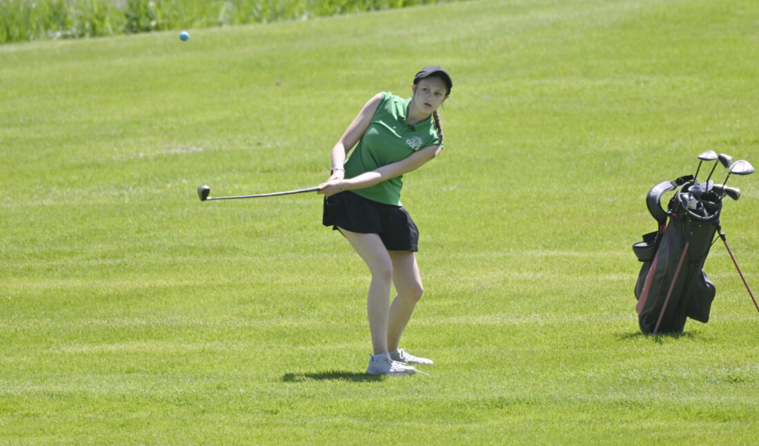 Messenger photo by Britt Kudla: Ann Veneziano hits an approach shot at Lakeside last year.