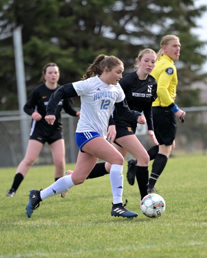 —Photo by David Borer HUMBOLDT’S KALEIGH VINSAND takes the ball down field against Webster City recently. For more photos, please visit CU.messengernews.net