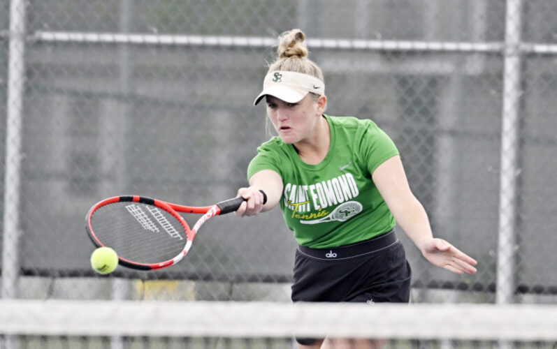 The St. Edmond girls tennis team advanced in Class 1A regional play here Friday with a 5-2 victory over North Central Conference rival Iowa Falls-Alden.
