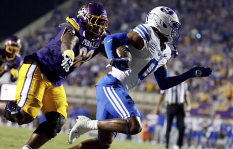 GREENVILLE, N.C. (AP) — BYU's Evan Johnson had a goal-line interception followed by a short pick-6 on East Carolina's next throw to help the Cougars beat the Pirates 34-13 on Saturday night.