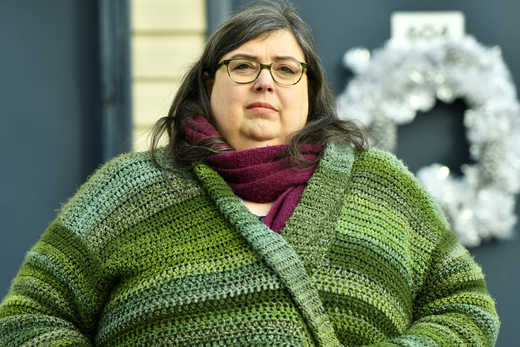 Lynn Weidner, a home care worker who worries that the cost of her health insurance plan in the Affordable Care Act marketplace will rise, poses in front of her home, Thursday, Dec. 4, 2025, in Allentown, Pa. (AP Photo/Marc Levy)