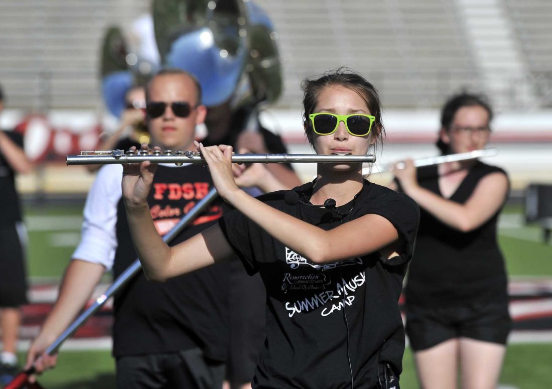 -Messenger photo by Hans Madsen Fort Dodge Senior High Marching Band flutist Karisa Meier, 16, performs her solo Friday afternoon during an exhibition at Dodger Stadium.
