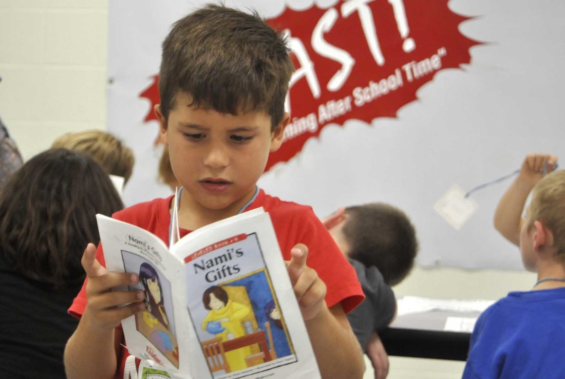 - -Messenger photo by Chad Thompson Drake Hayes, first-grade student at Butler Elementary School, takes a peak at Nami’s Gifts during Dodger Academy Tuesday afternoon at Butler Elementary School. Dodger Academy, formerly known as B.L.A.S.T., is an after school academic enrichment program.